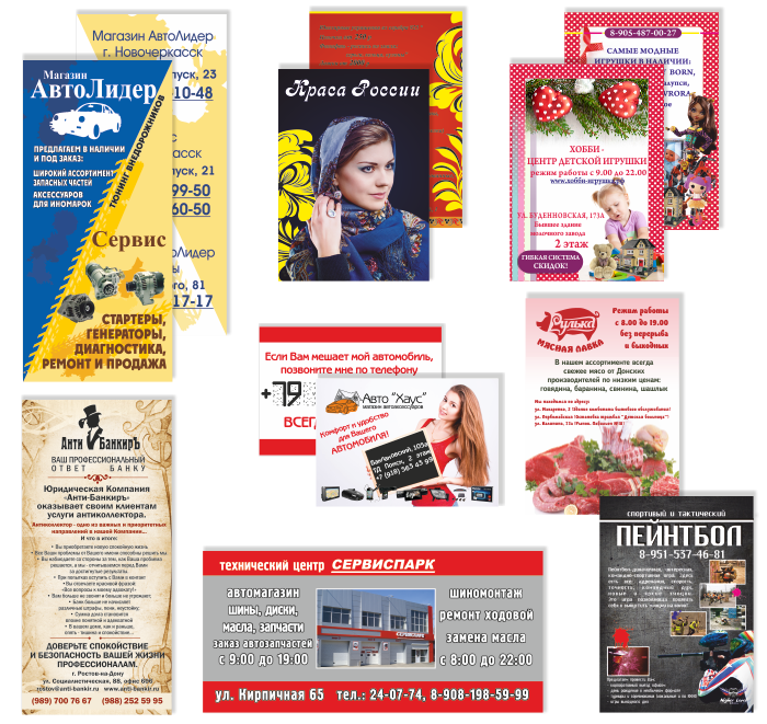Мы печатаем листовки, флаеры, буклеты различных видов и форматов, как на офсетной, так и на цифровой печати. Возможна печать как односторонних так и двухсторонних листовок, на бумаге разной плотности. Можем разработать индивидуальный дизайн-макет по вашим пожеланиям. Заказать печать листовок вы можете, связавшись с нами по телефону 8(8635)29-35-12 или отправив запрос по электронной почте